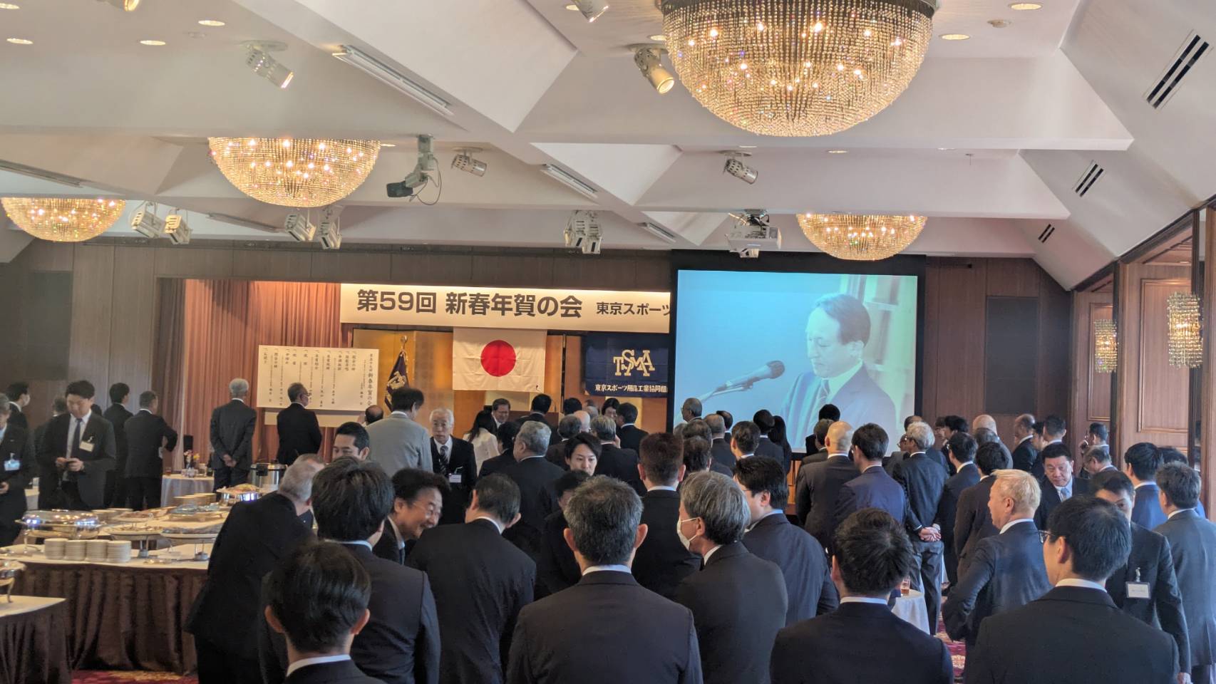 2026年の幕開けは、東京スポーツ用品工業協同組合よりご招待いただき、日の丸を前に国歌斉唱するという、心を引き締める場から始まりました。